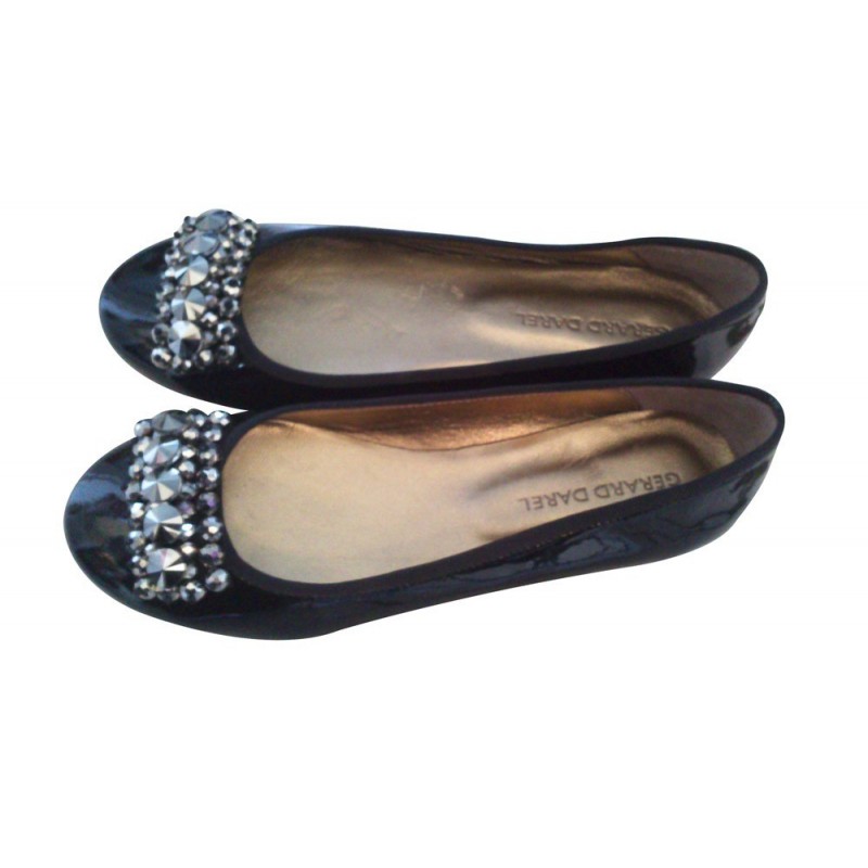 Jolie paire de ballerines bijoux en cuir vernis noir.