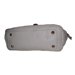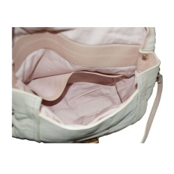 Liane Bag petit modèle en cuir souple blanc, poignée et bandoulière rose pale.